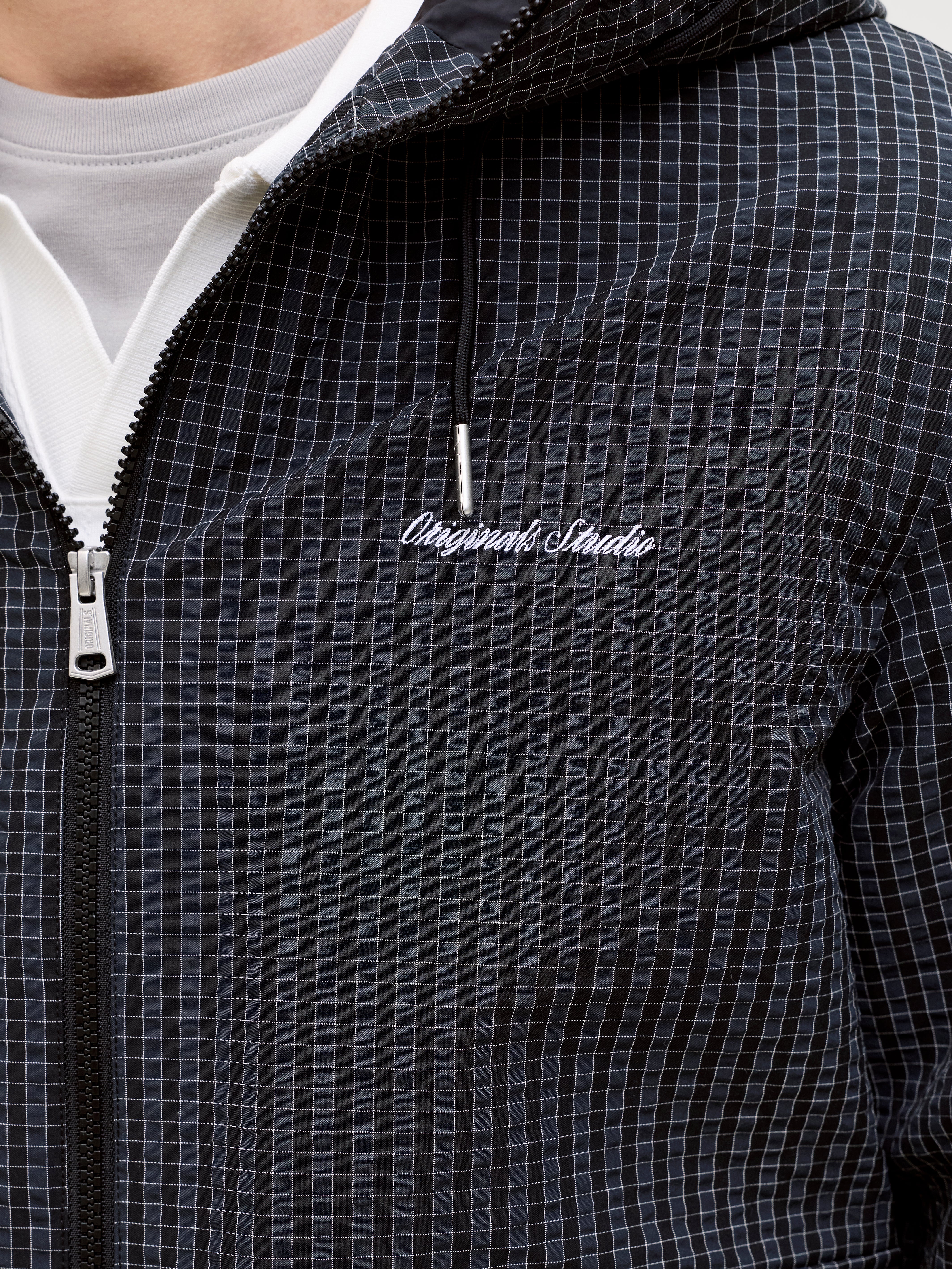 - Hals : Hætte med snoretræk
