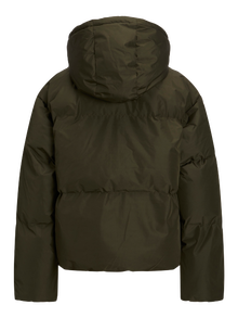 - Außenschicht: 100% Polyester; Futter: 100% Polyester; Polsterung: 70% Recycelter Polyester, 18% Federn, 12% Daunen