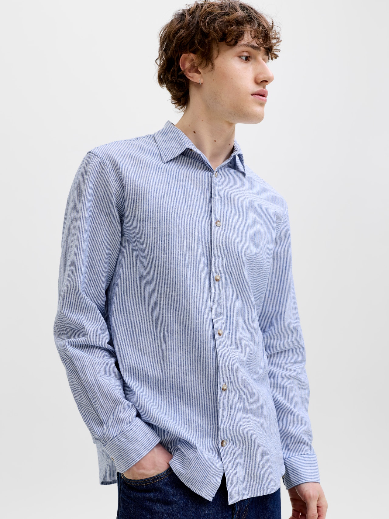 Eine leichte und atmungsaktive Leinenqualität mit einer natürlichen, luftigen Textur, die Sie bequem hält.