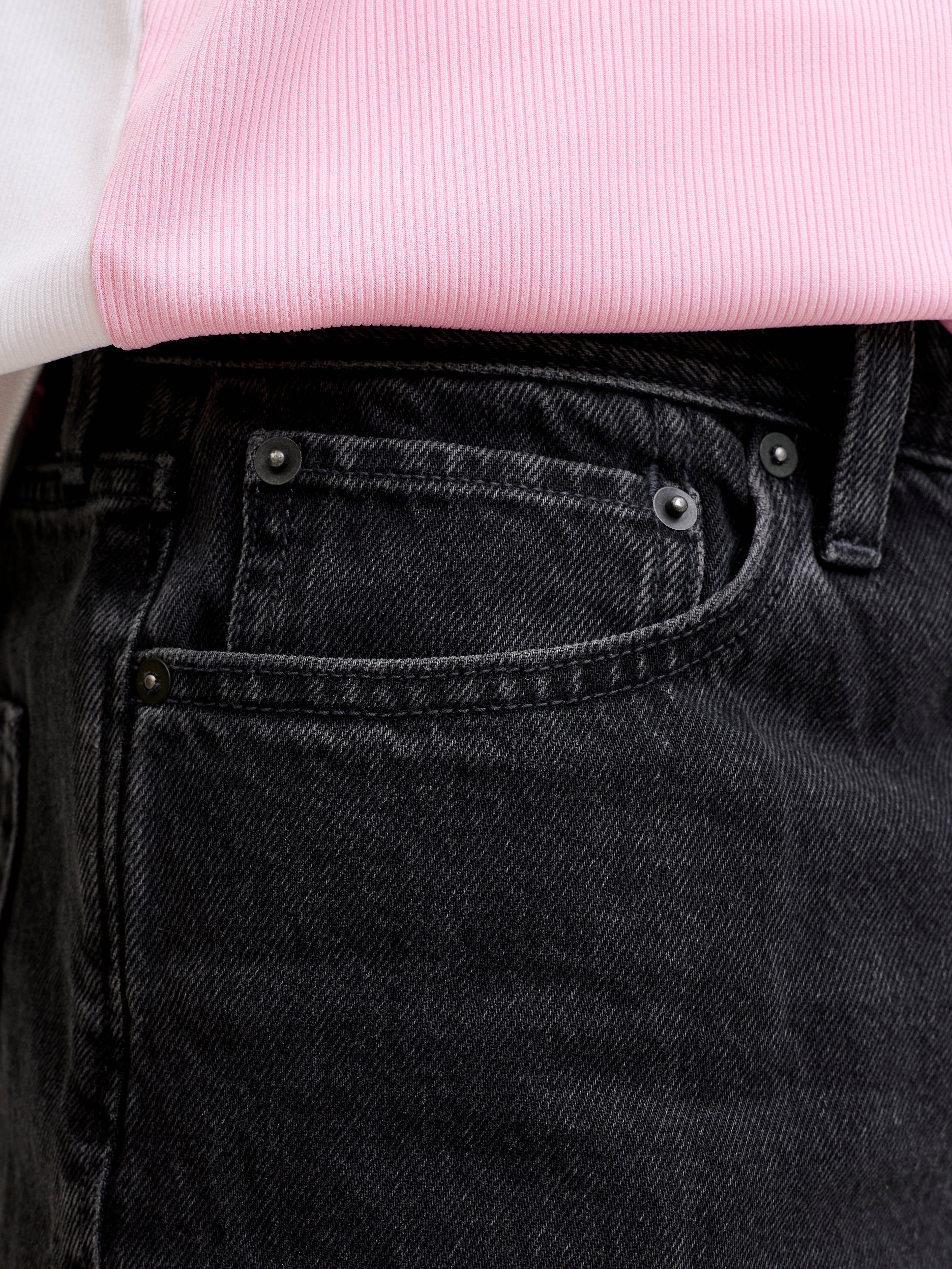 - Fit : Baggy fit with a high rise, baggy thigh, and wide leg opening