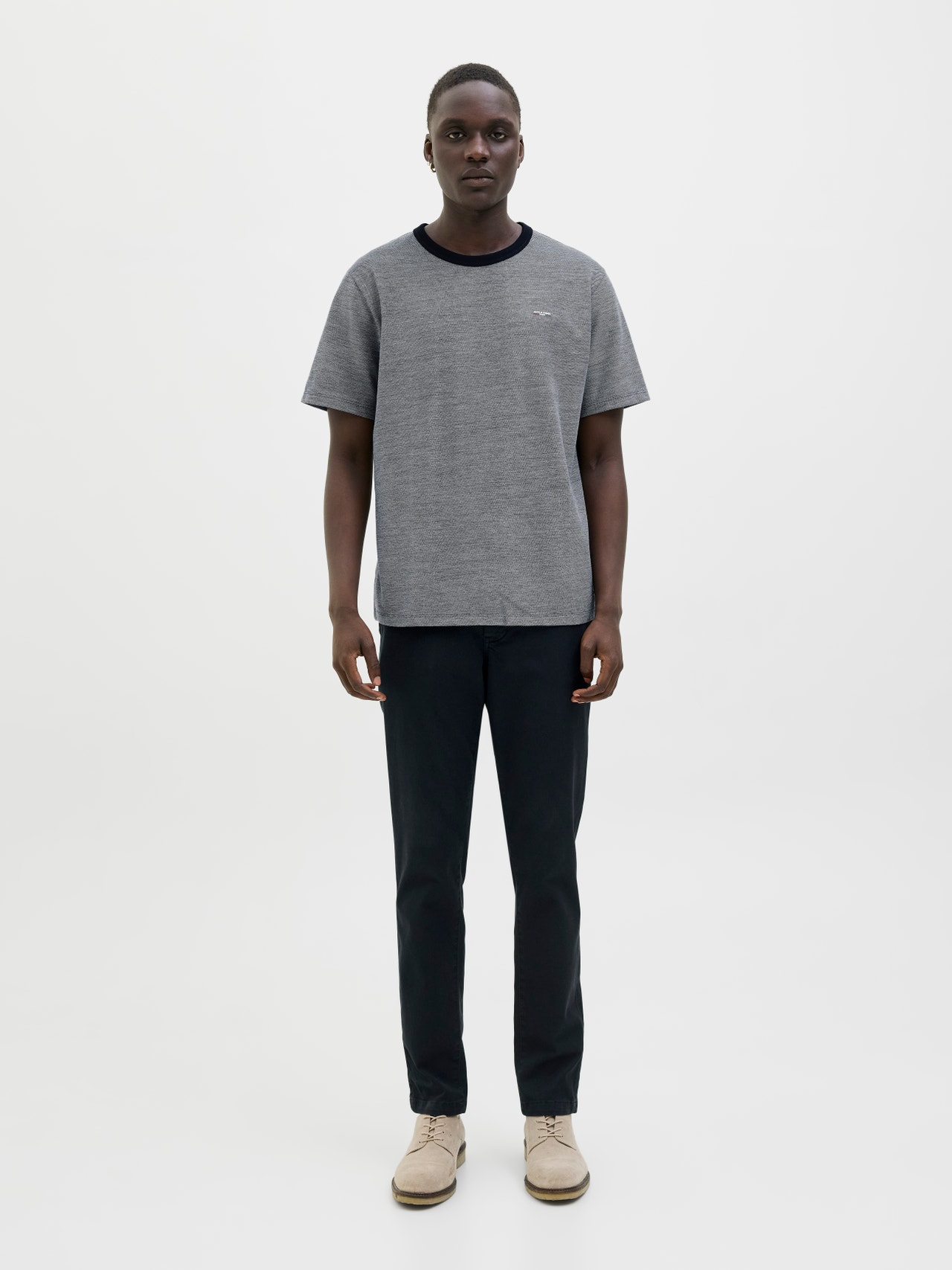 This basic T-shirt is a wardrobe essential that works well with jeans, shorts, and trousers.