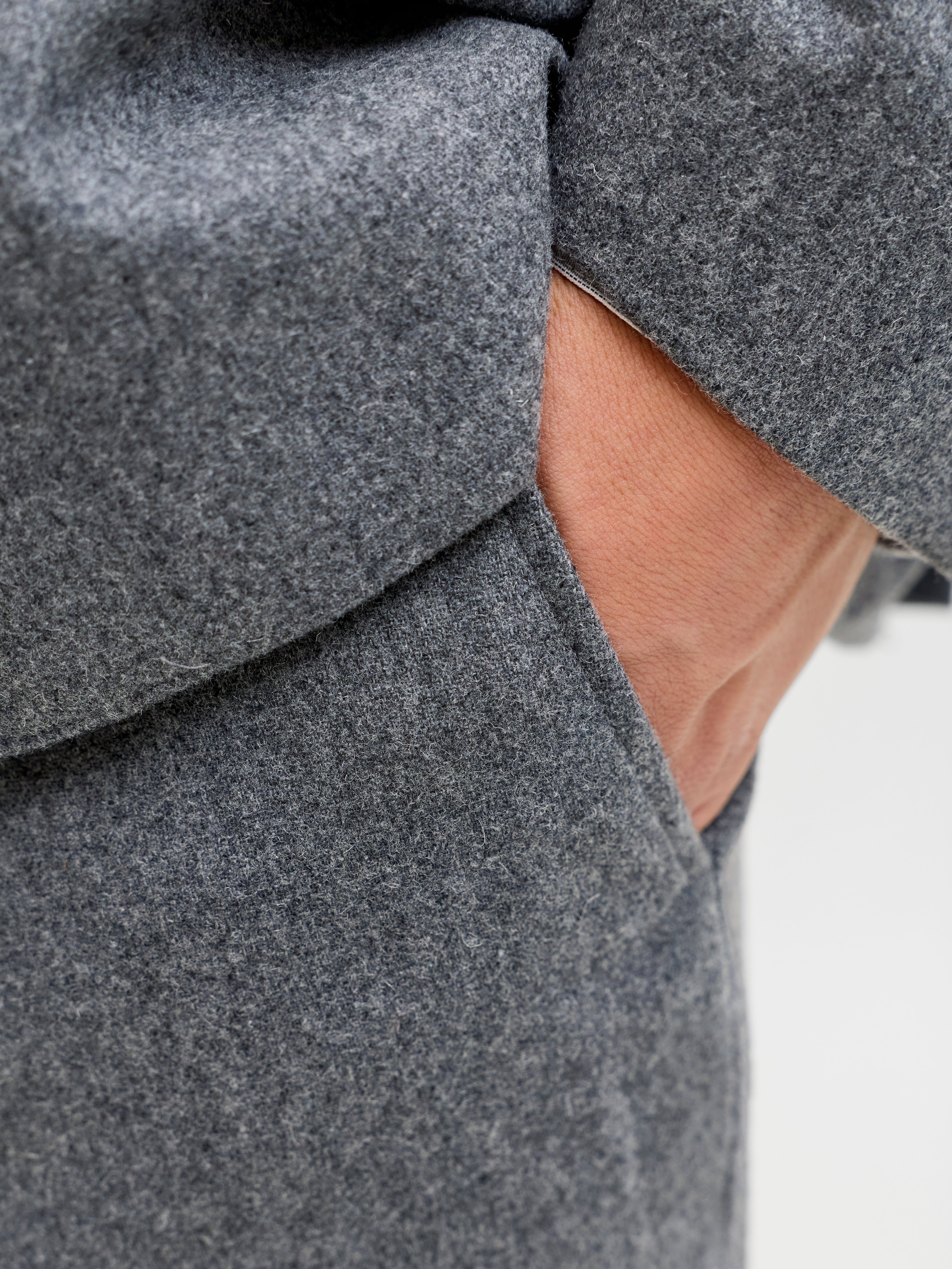 - Outer: 50% Recycled Polyester, 50% Wool; Lining: 100% Polyester