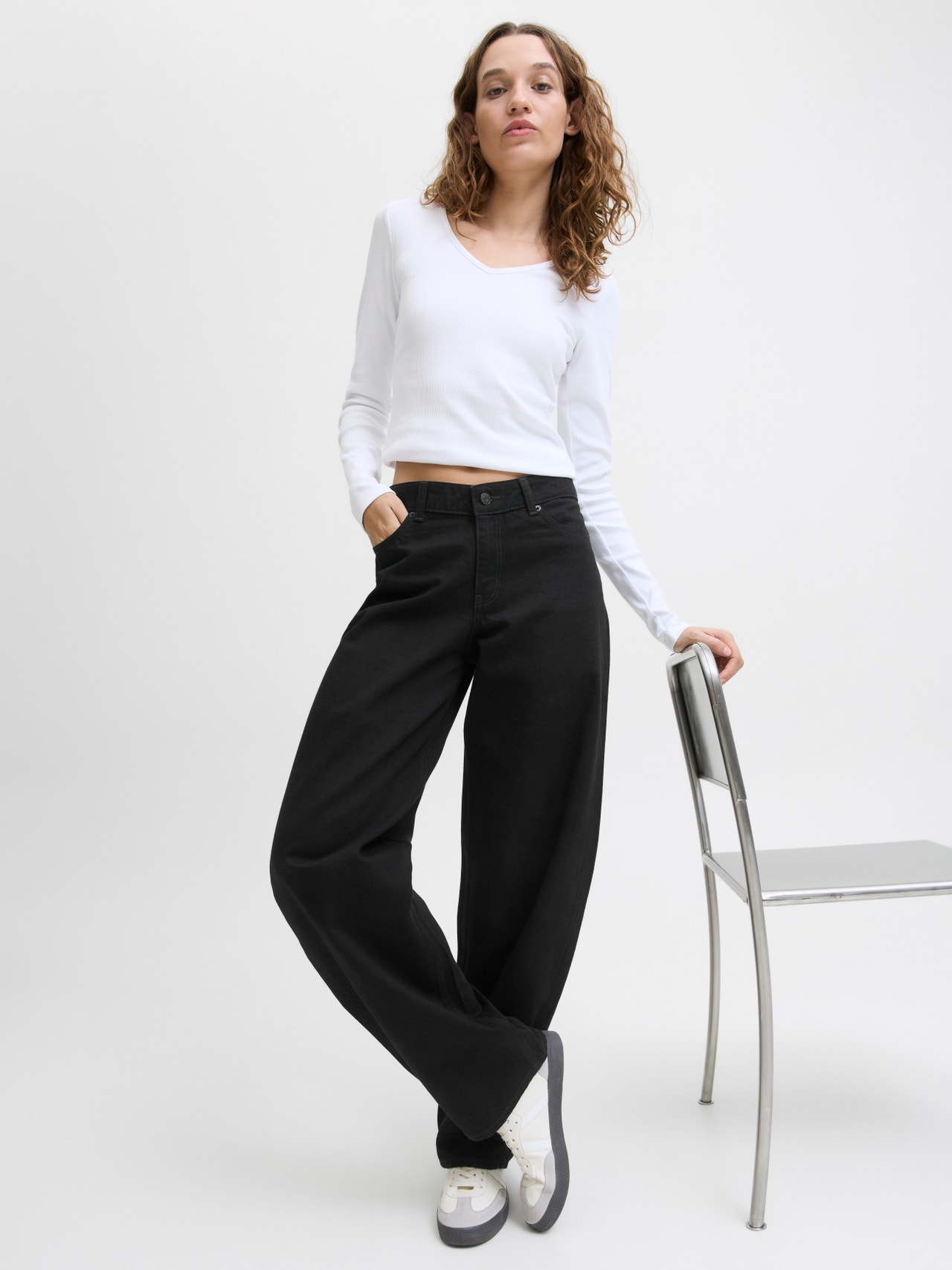 - Fit : Mid waist, relaxed fitted, loose leg
