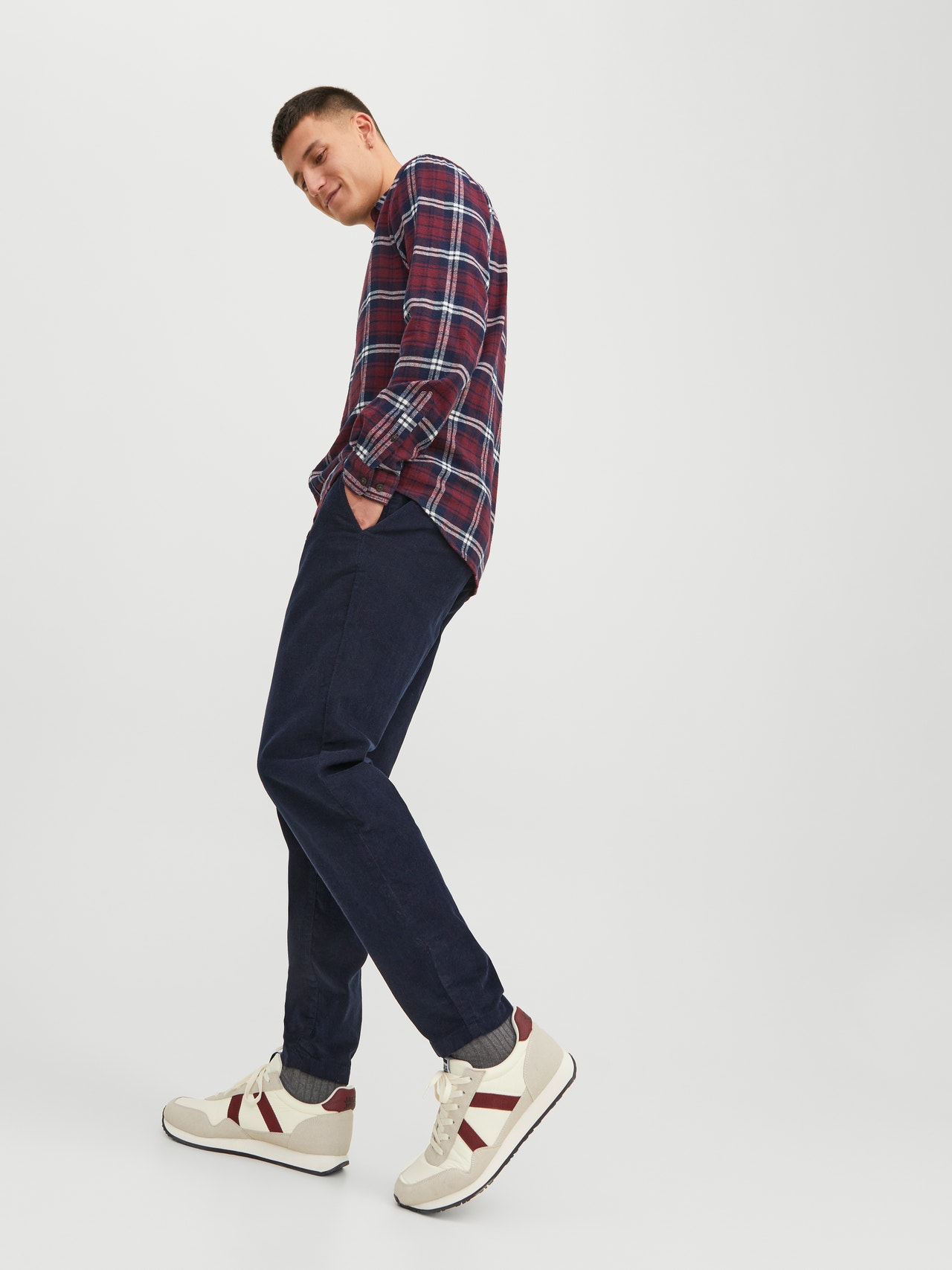 Los pantalones chinos son una prenda esencial en esta categoría. Es la prenda intermedia entre un pantalón de vestir y un modelo más informal de 5 bolsillos. Su estilo es mucho más sobrio, y cuenta únicamente con bolsillos delanteros y traseros.