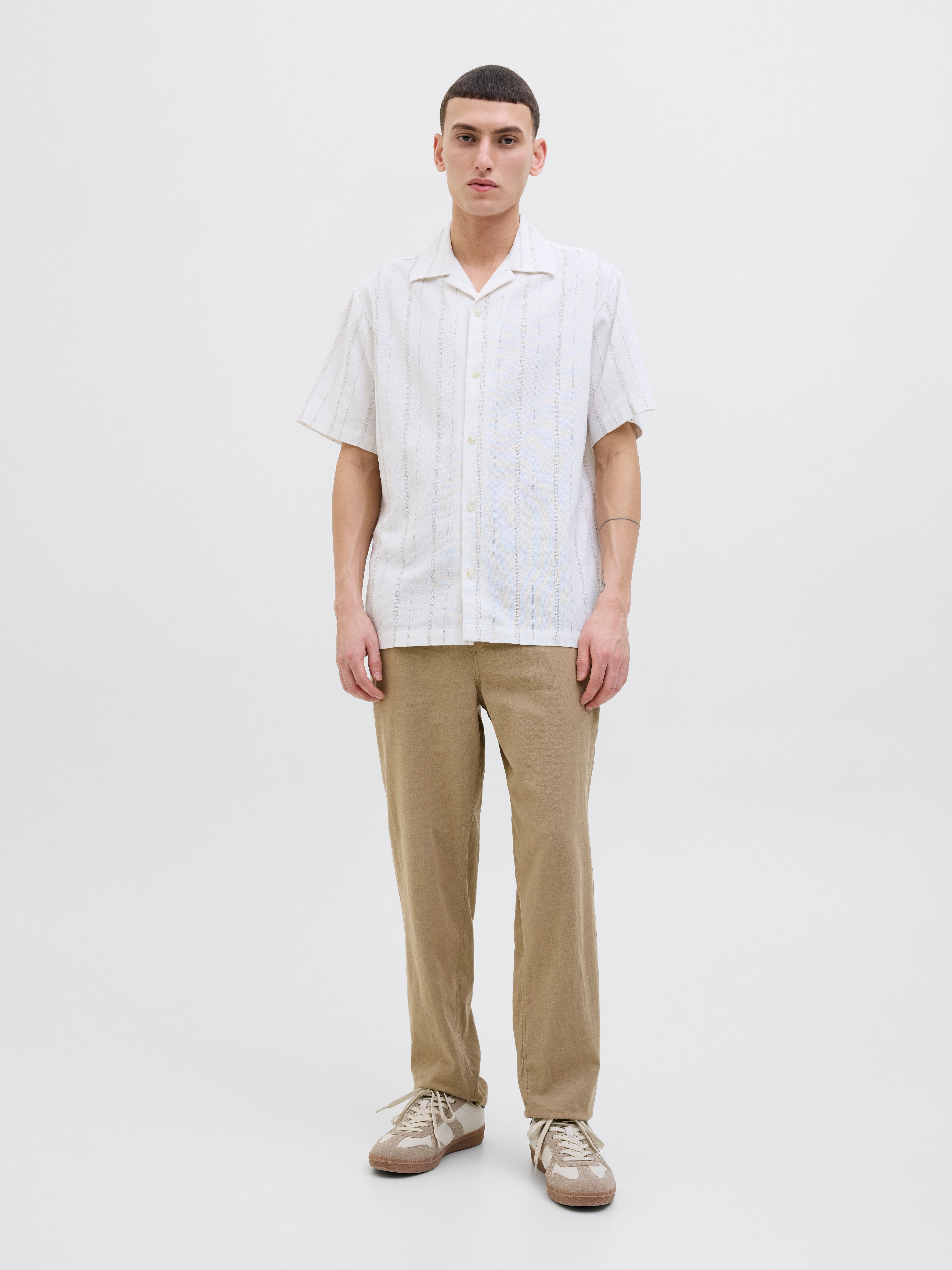 - 80% Puuvilla, 18% Pellava, 2% Elastaani
