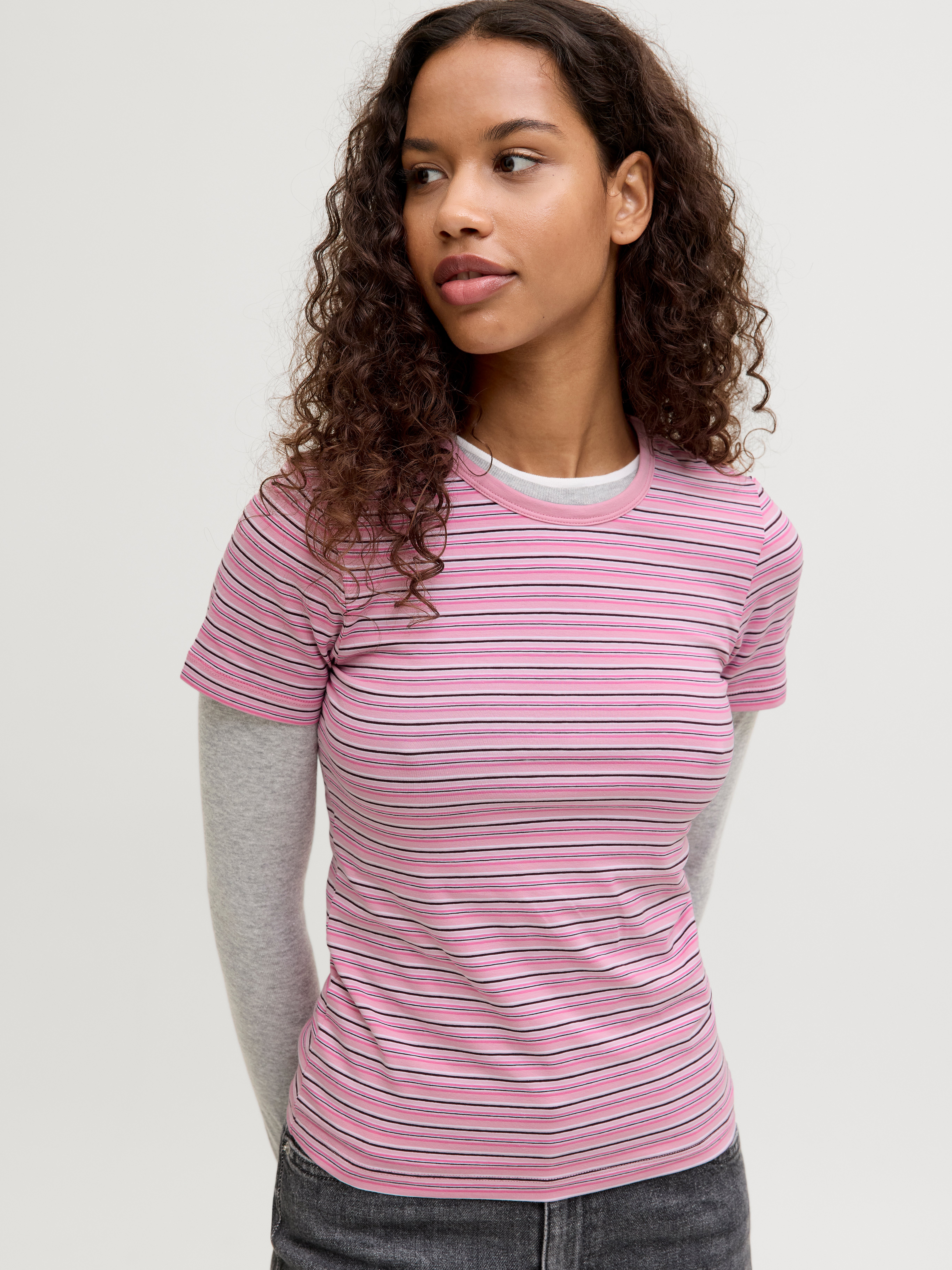 Tämä perus-T-paita on vaatekaapin välttämättömyys, joka toimii hyvin farkkujen, shortsien ja housujen kanssa.