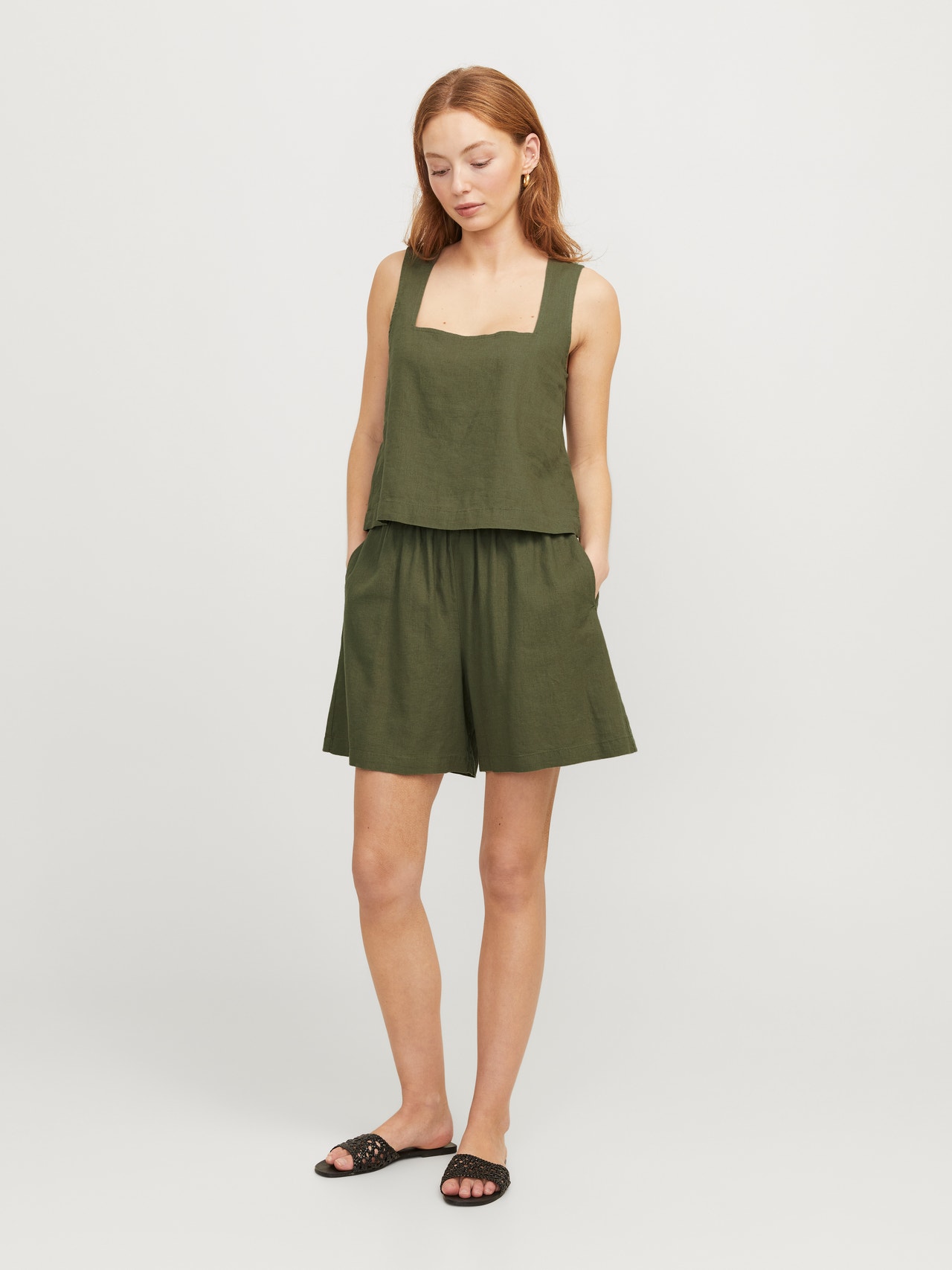 - Päällikangas: 70% Viskoosi, 30% Pellava