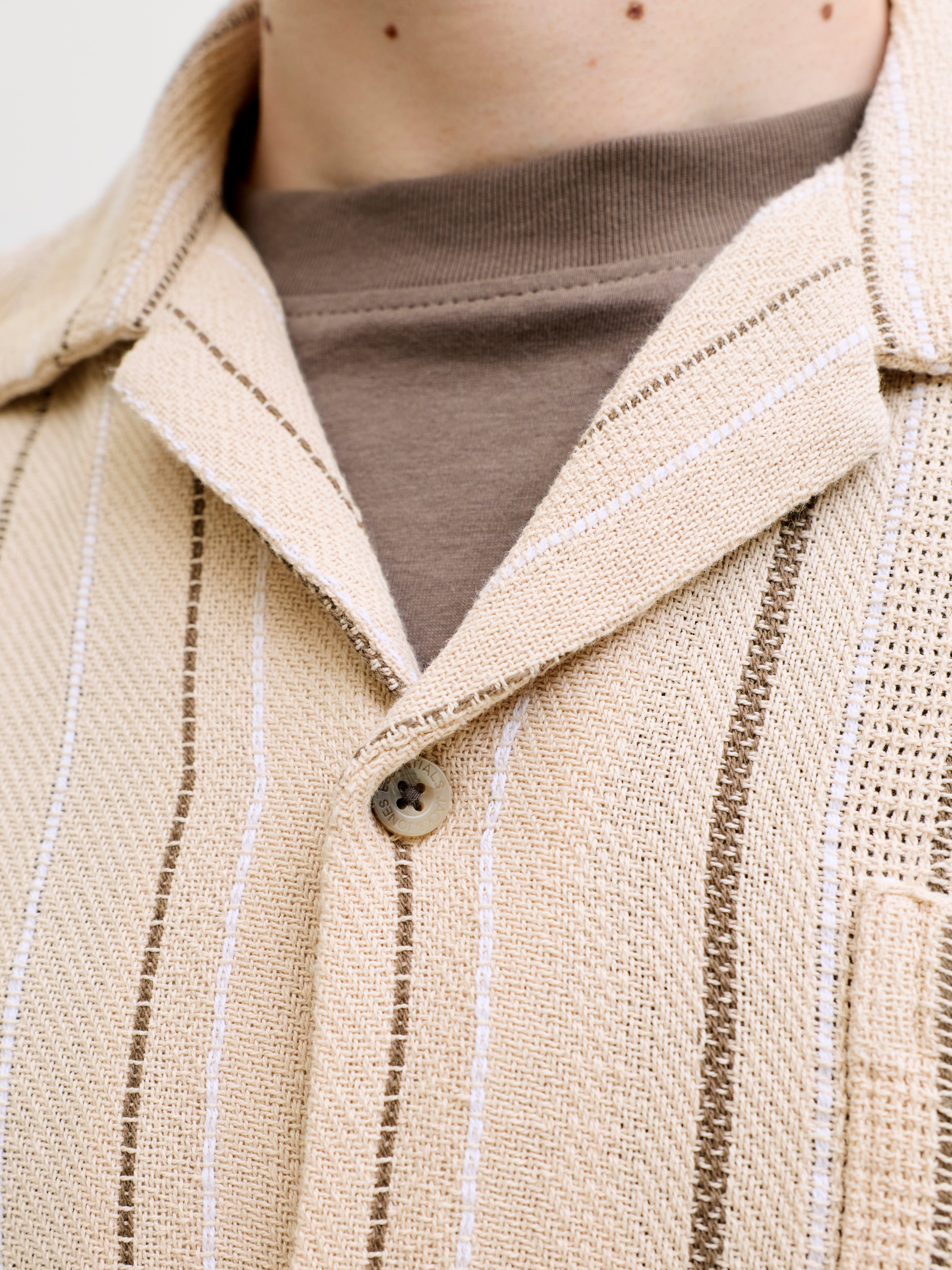 Dobby-kankaassa on pieniä geometrisiä kuvioita, jotka lisäävät tekstuuria hienostuneeseen ilmeeseen.