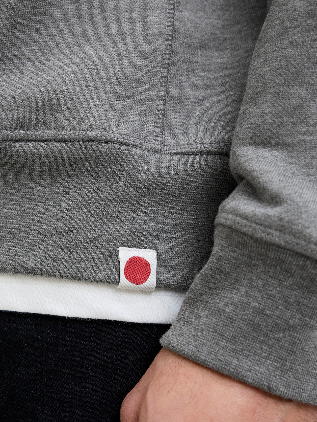 Il tessuto in felpa non garzato ha una superficie liscia con trama anellata all’interno, per una sensazione di comfort.