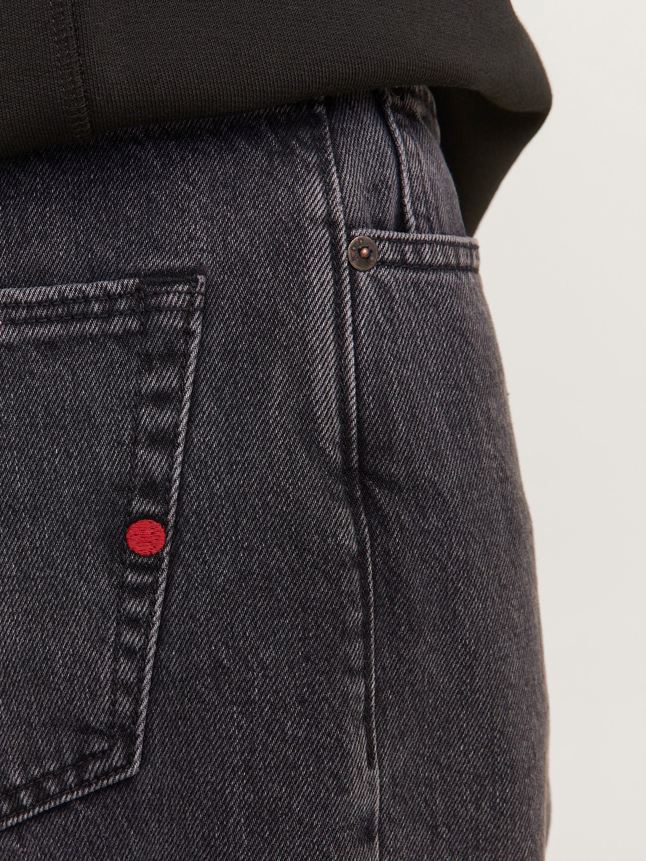 - Vestibilità : Si tratta di classici jeans larghi con molto spazio e una forma dritta dall'alto verso il basso. Vestibilità ampia realizzata con molto spazio. La vita più bassa garantisce più spazio dalle ginocchia in su. Coscia, ginocchio e gamba sono molto sciolti. Taglio dritto dal ginocchio in giù