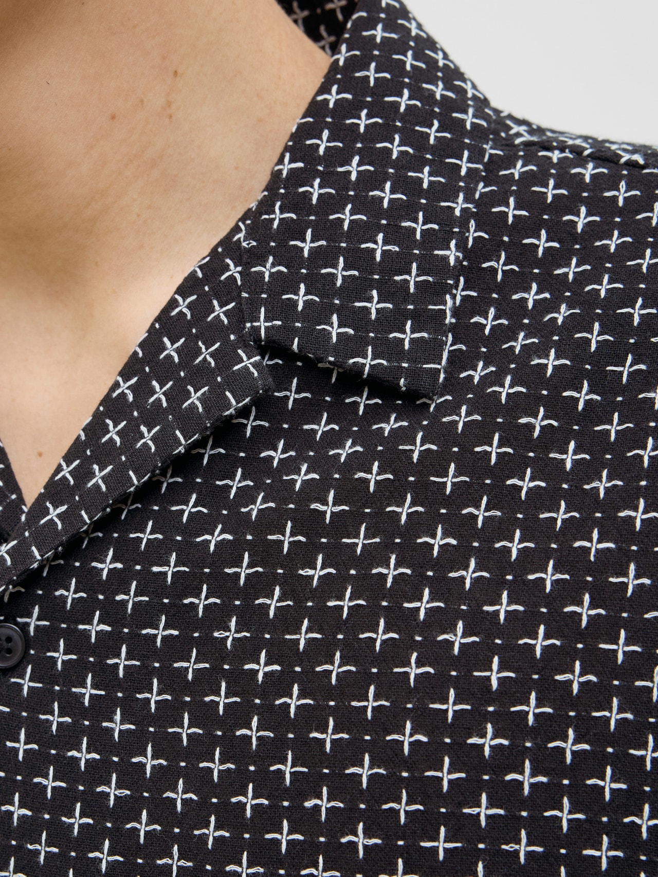 Il tessuto dobby presenta piccoli motivi geometrici che aggiungono consistenza, per un look raffinato.