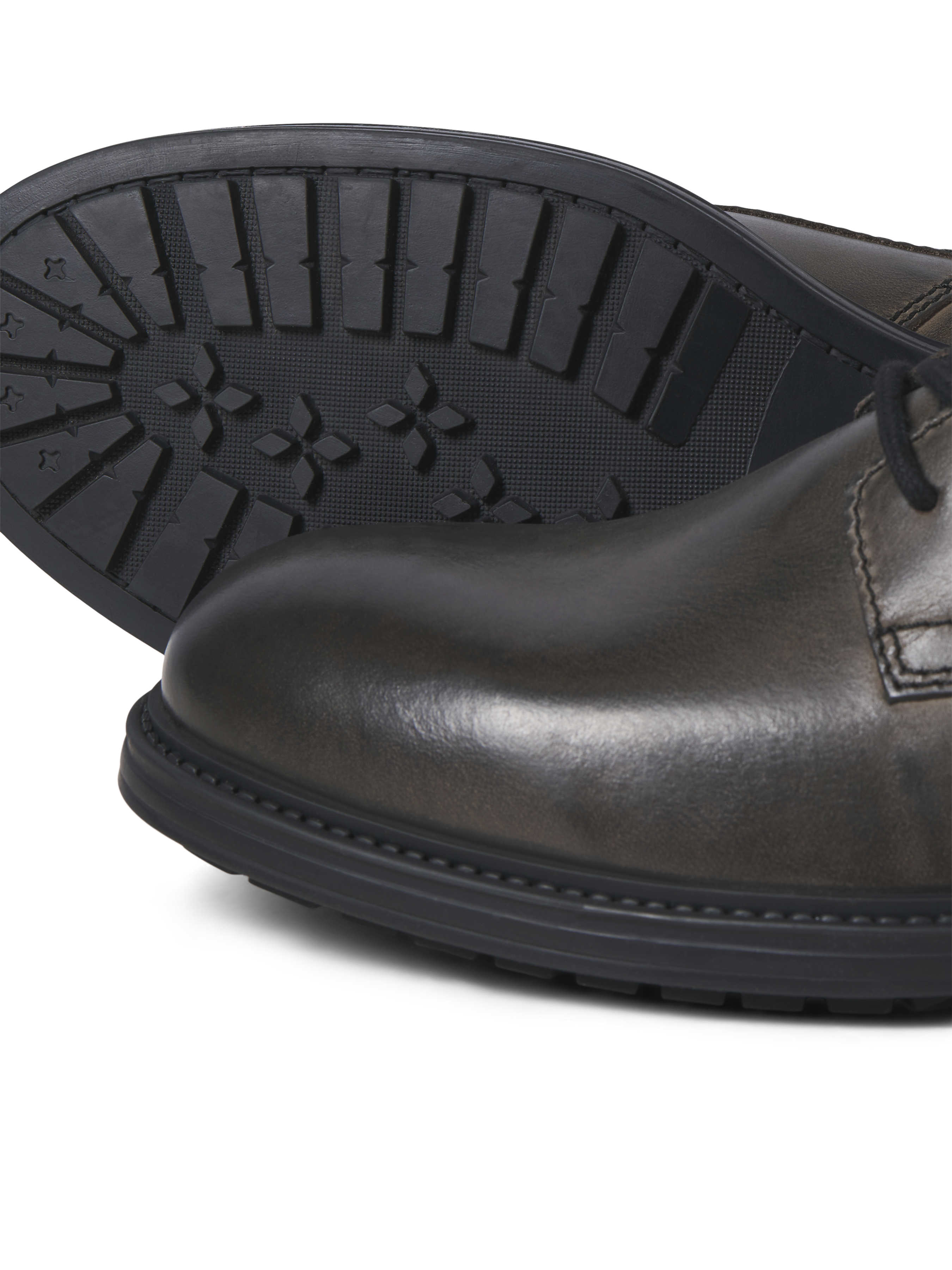- Viršutinis: 100% Karvės oda; Vidinis: 100% Karvės oda; Vidpadis: 100% Medvilnė; Padas: 100% Guma