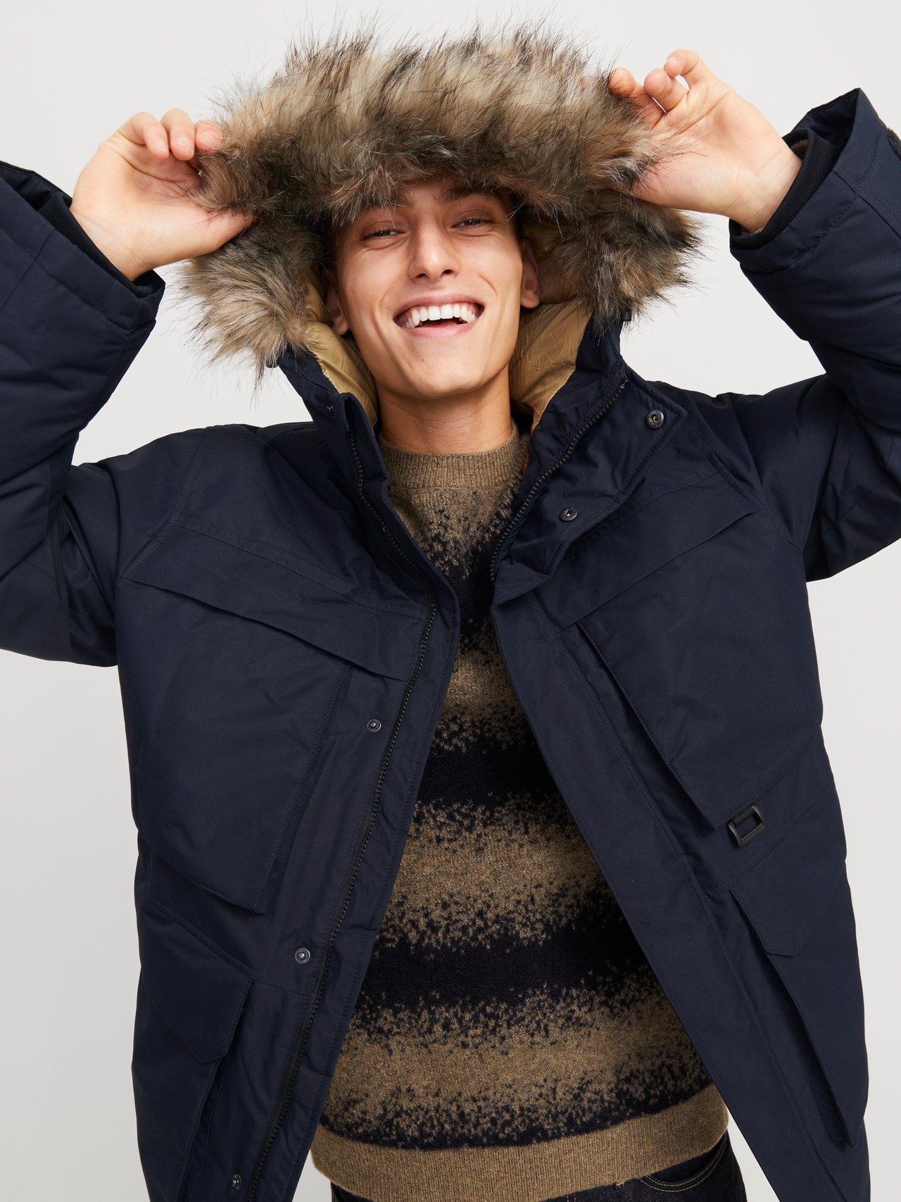 - Kaklas : Gaubtas w. Nuimamas sintetinio kailio kraštas