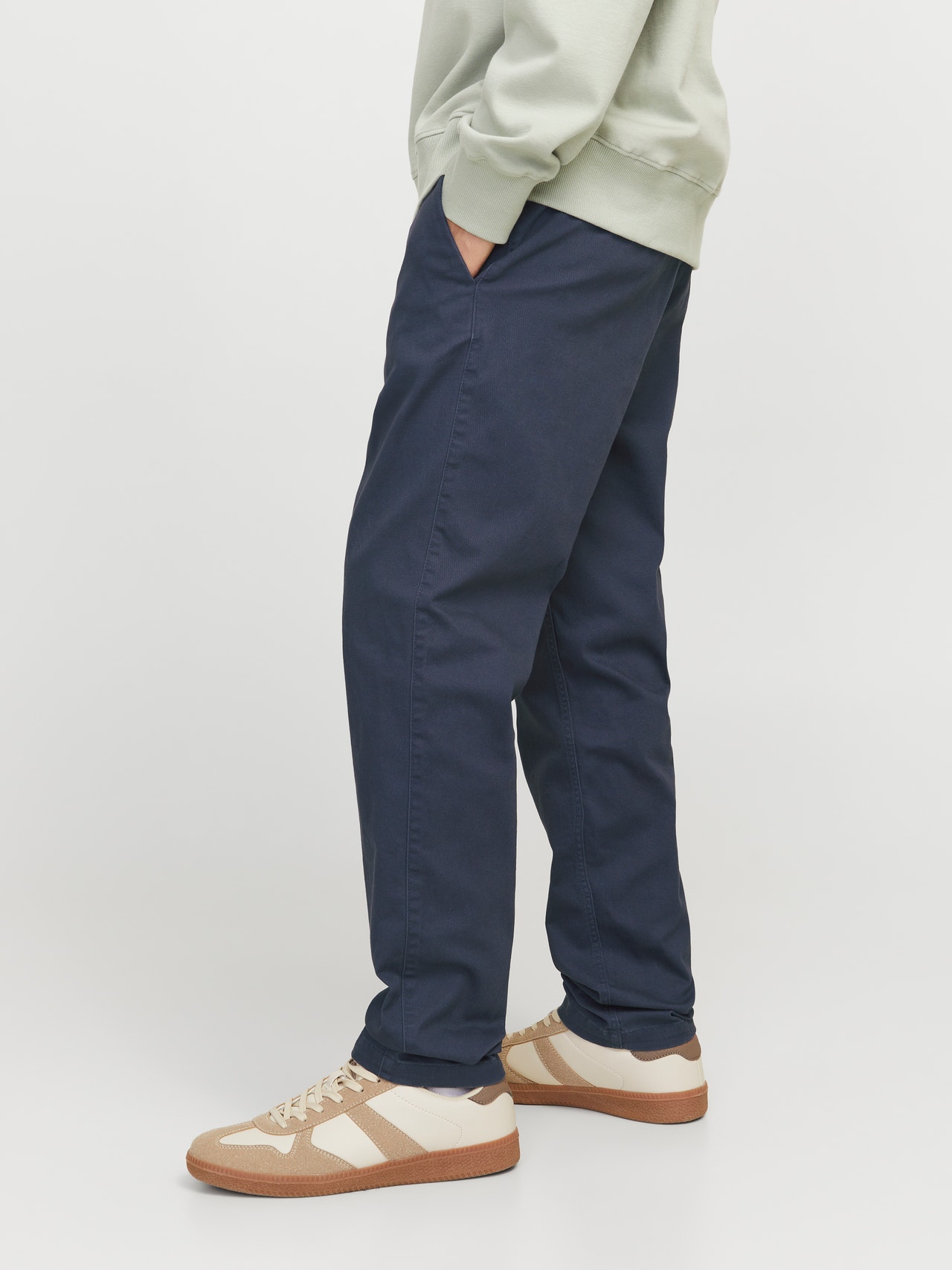 Laisvas kirpimas Chino kelnės