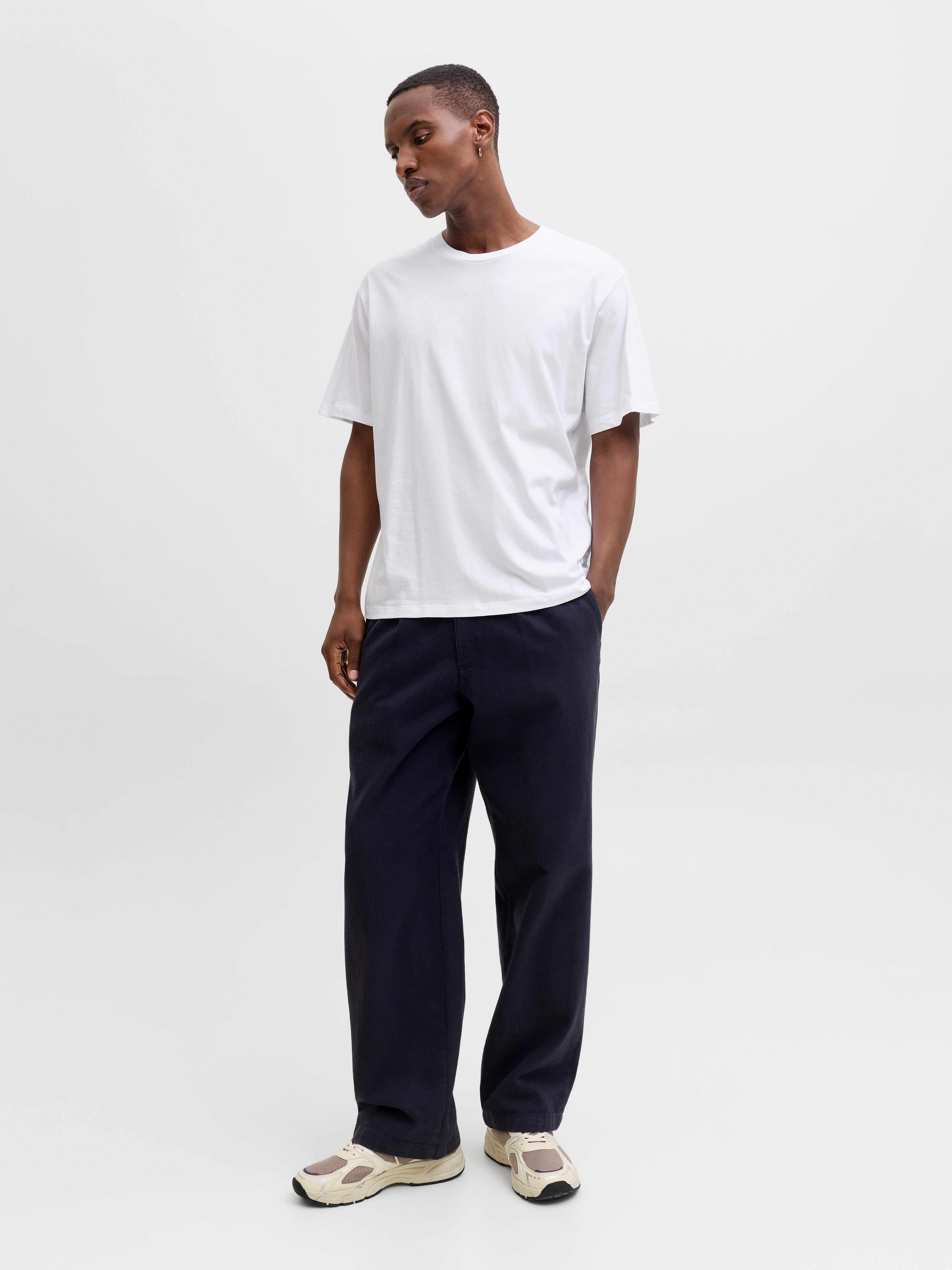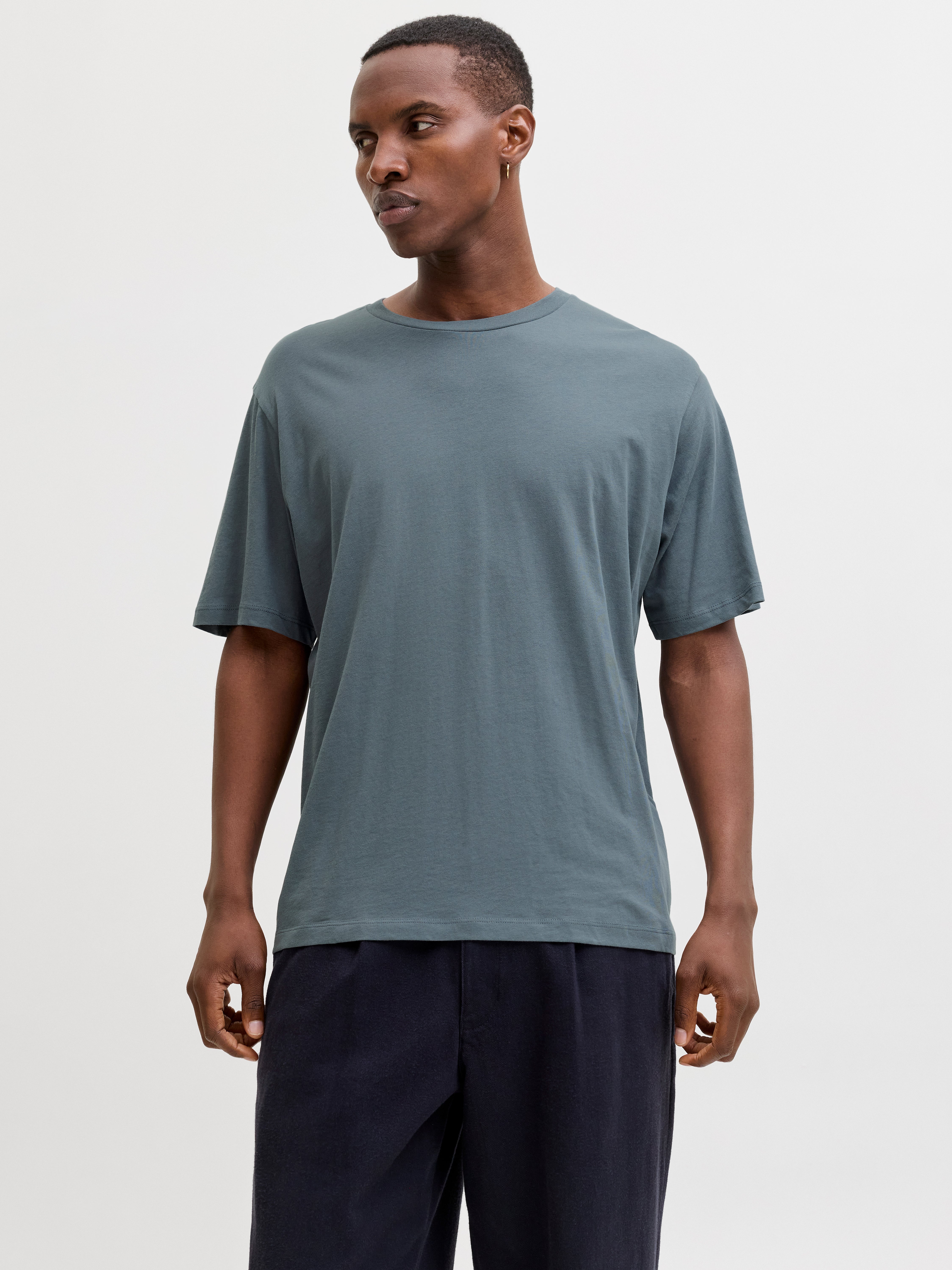 Šie pagrindiniai marškinėliai yra būtini drabužių spinta, puikiai tinkanti prie džinsų, šortų ir kelnių.