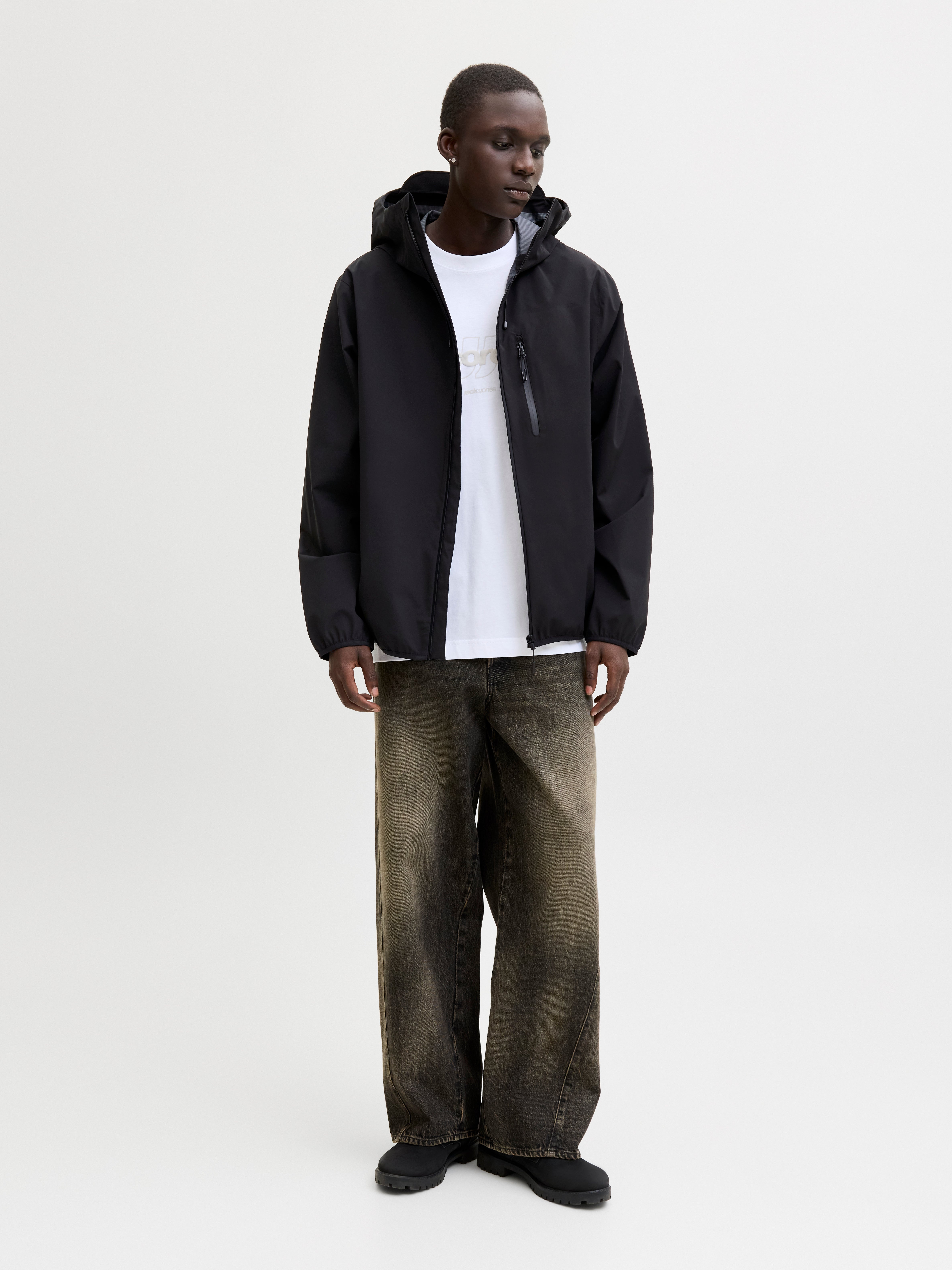 Vanntett jakke laget av stoff i høy kvalitet med funksjonelle detaljer til våren.