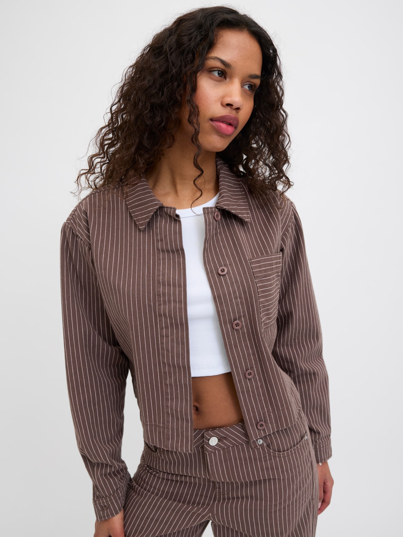 Ten warstwowy element dobrze sprawdza się z płaszczem lub shacketem, ale może również stać samodzielnie.