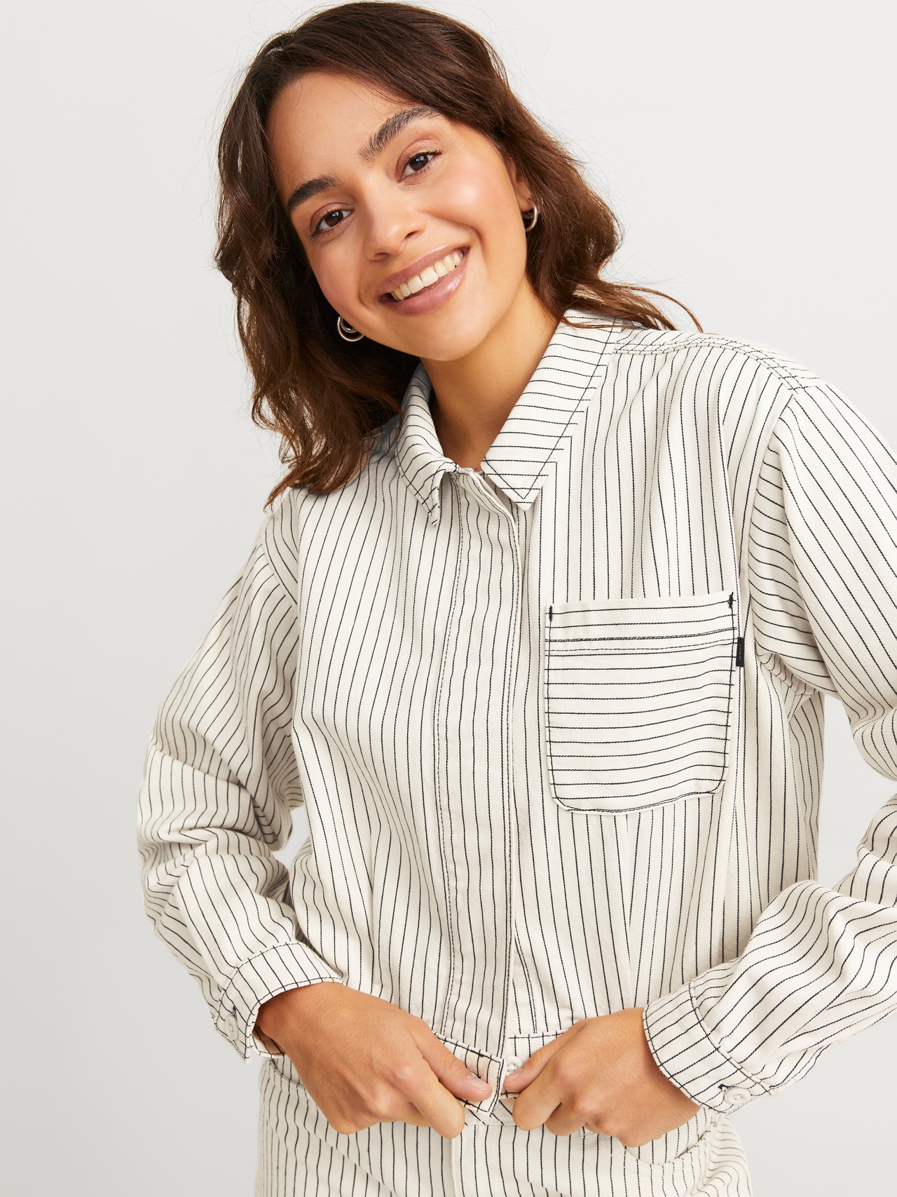 Ten warstwowy element dobrze sprawdza się z płaszczem lub shacketem, ale może również stać samodzielnie.