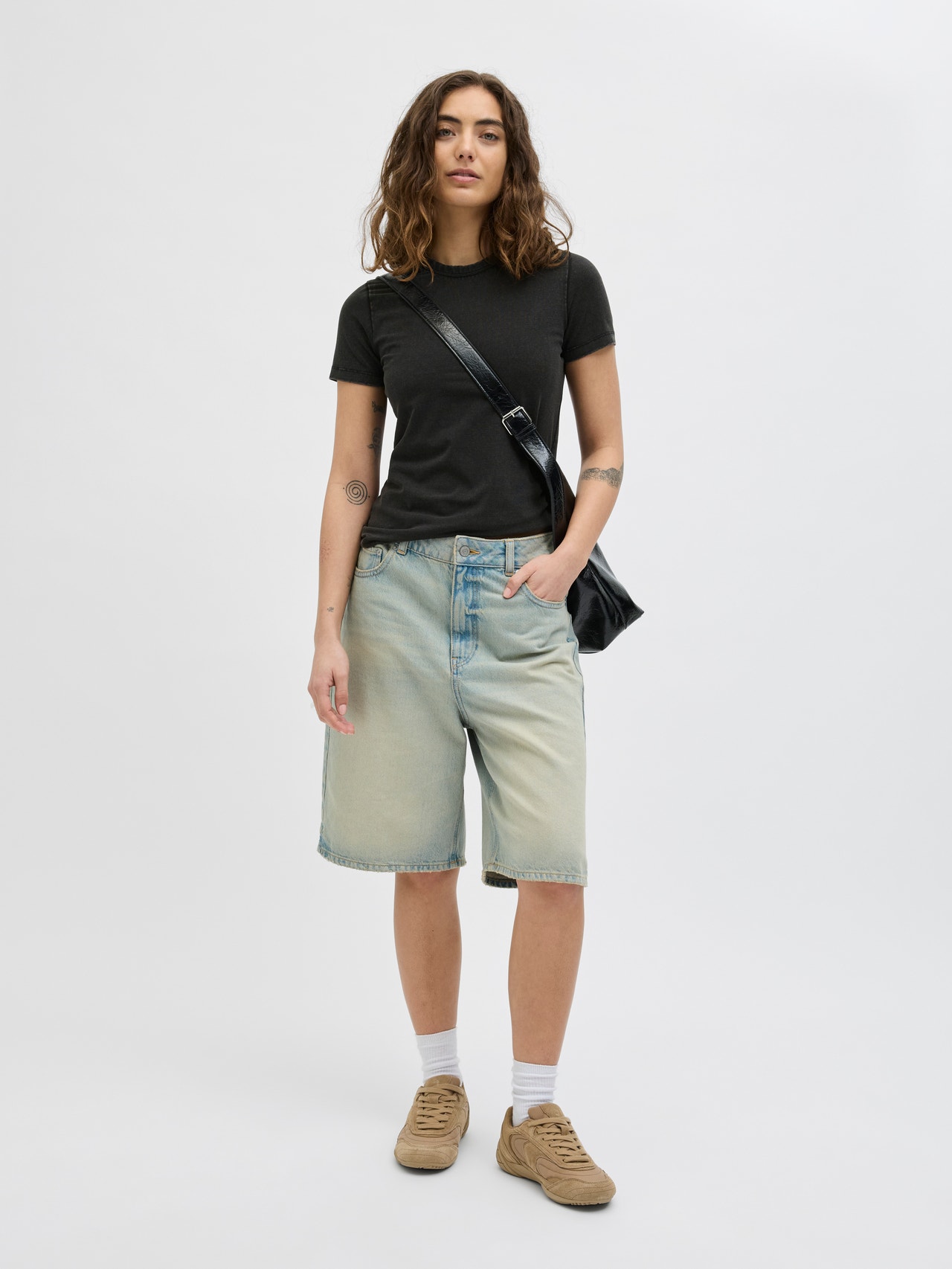 Esta T-shirt básica é um essencial que funciona bem com jeans, calções e calças.