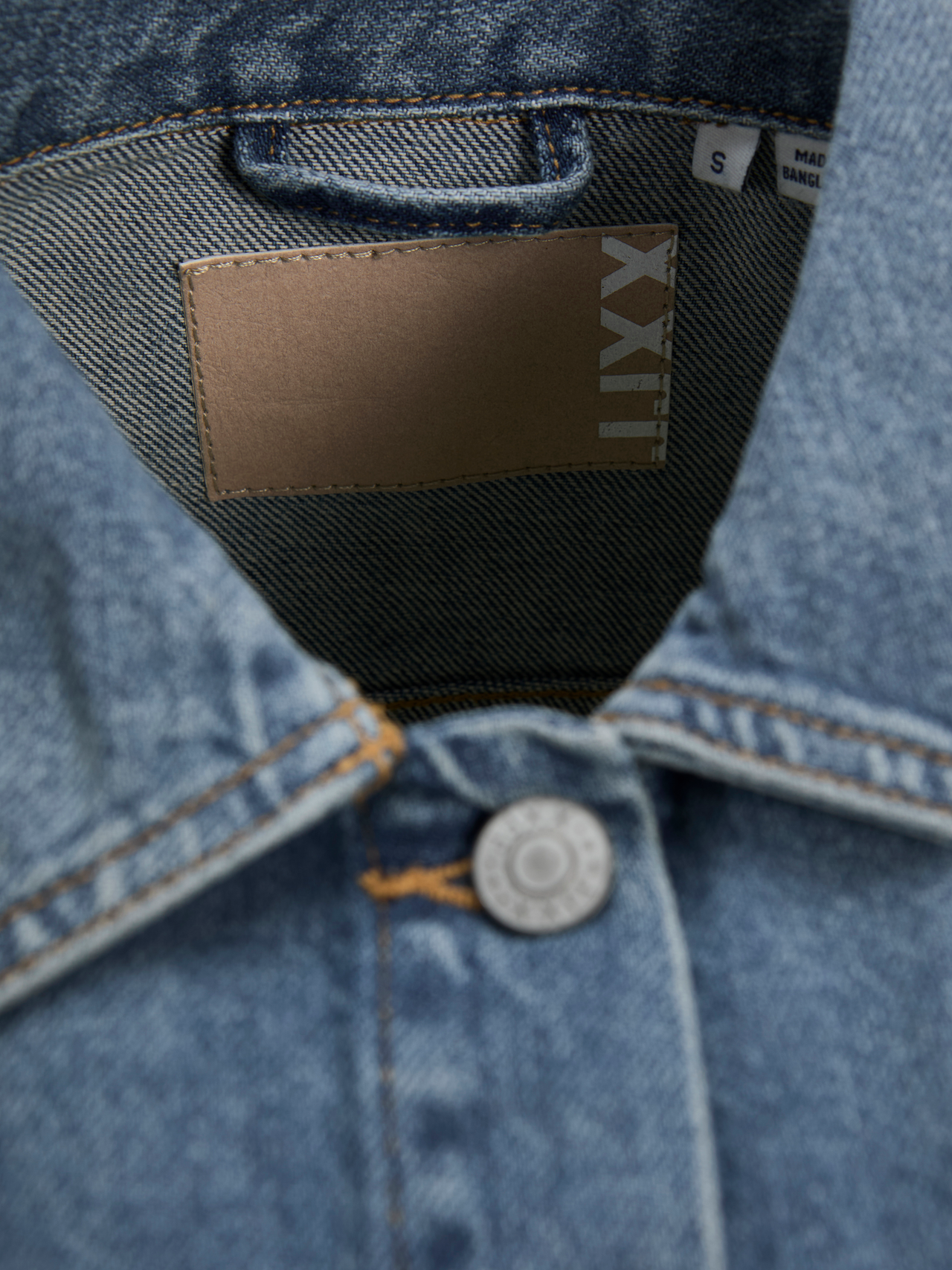 - Lavagem/acabamento : Lavagem média para um aspeto de ganga lavado e desgastado