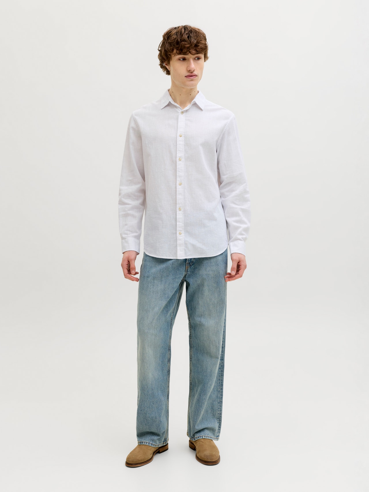 Uma qualidade de linho leve e respirável com uma textura natural e arejada, que o mantém confortável.
