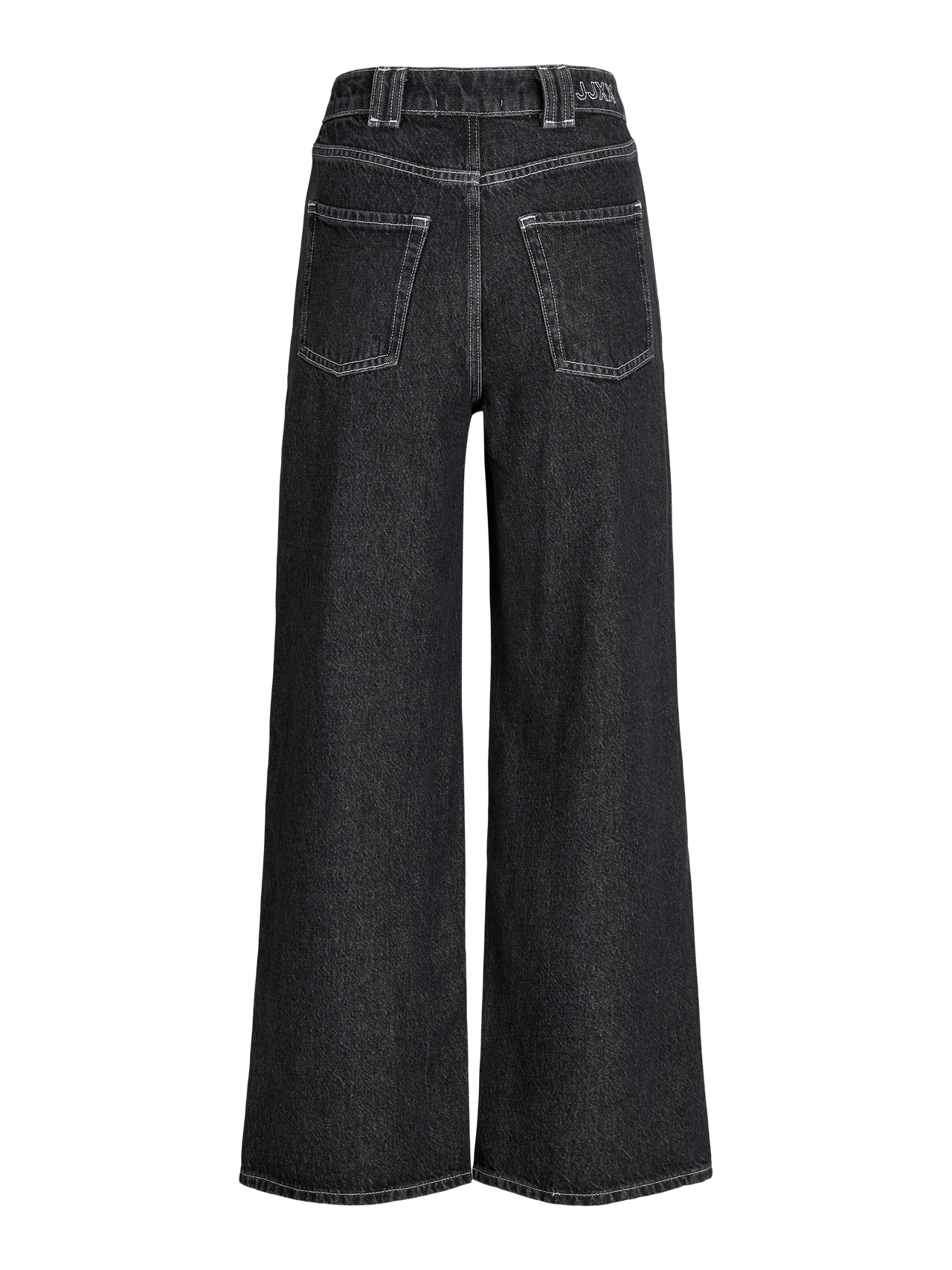 - Passform : Hög midja, avslappnad passform, vida ben